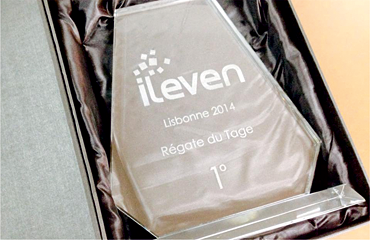 A gravação a laser permite que os troféus em vidro, cristal, acrílico e placas de homenagem sejam personalizados com logótipos.